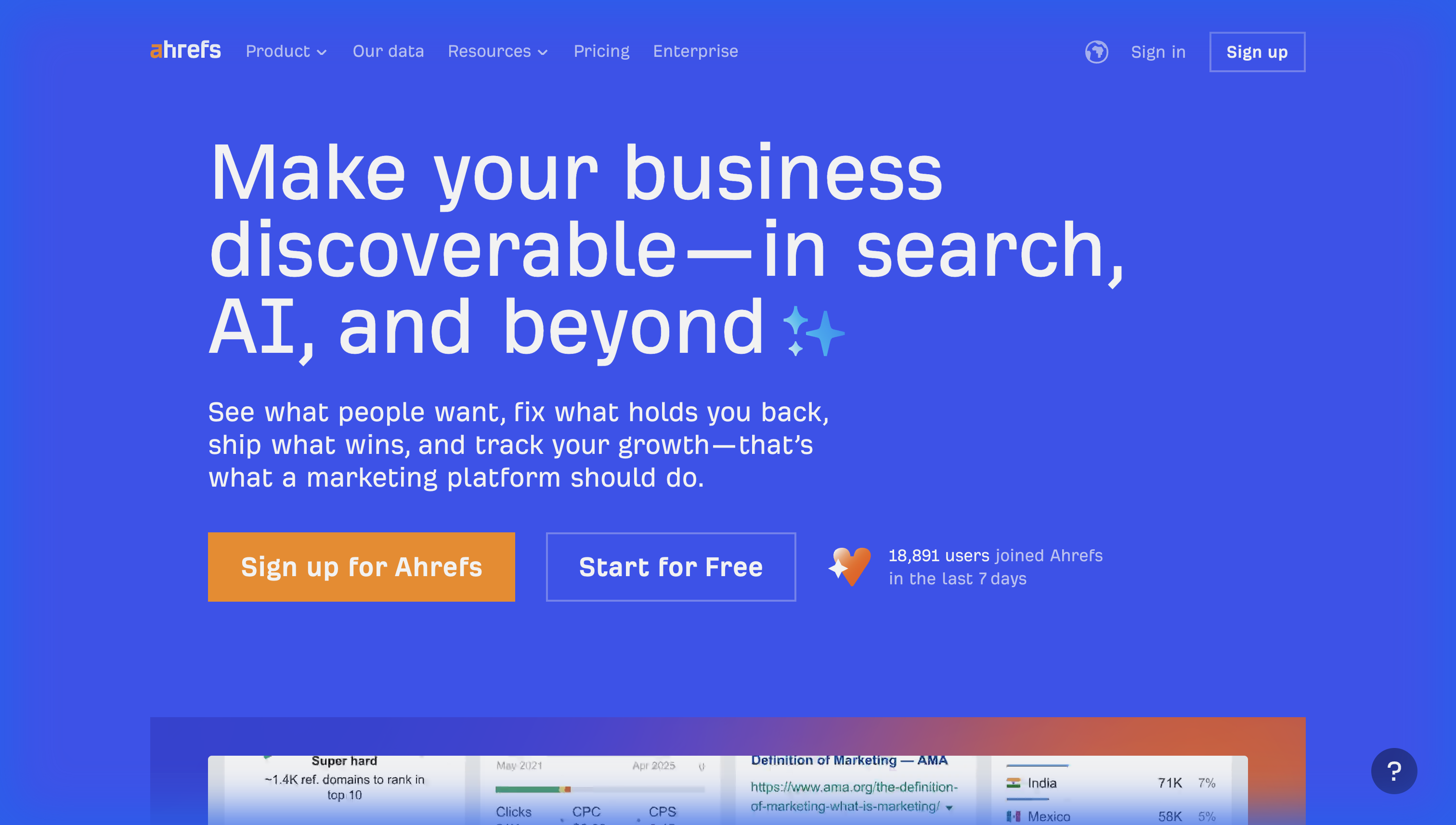 Best for: Combining AI mention tracking with Ahrefs' industry-leading backlink data.