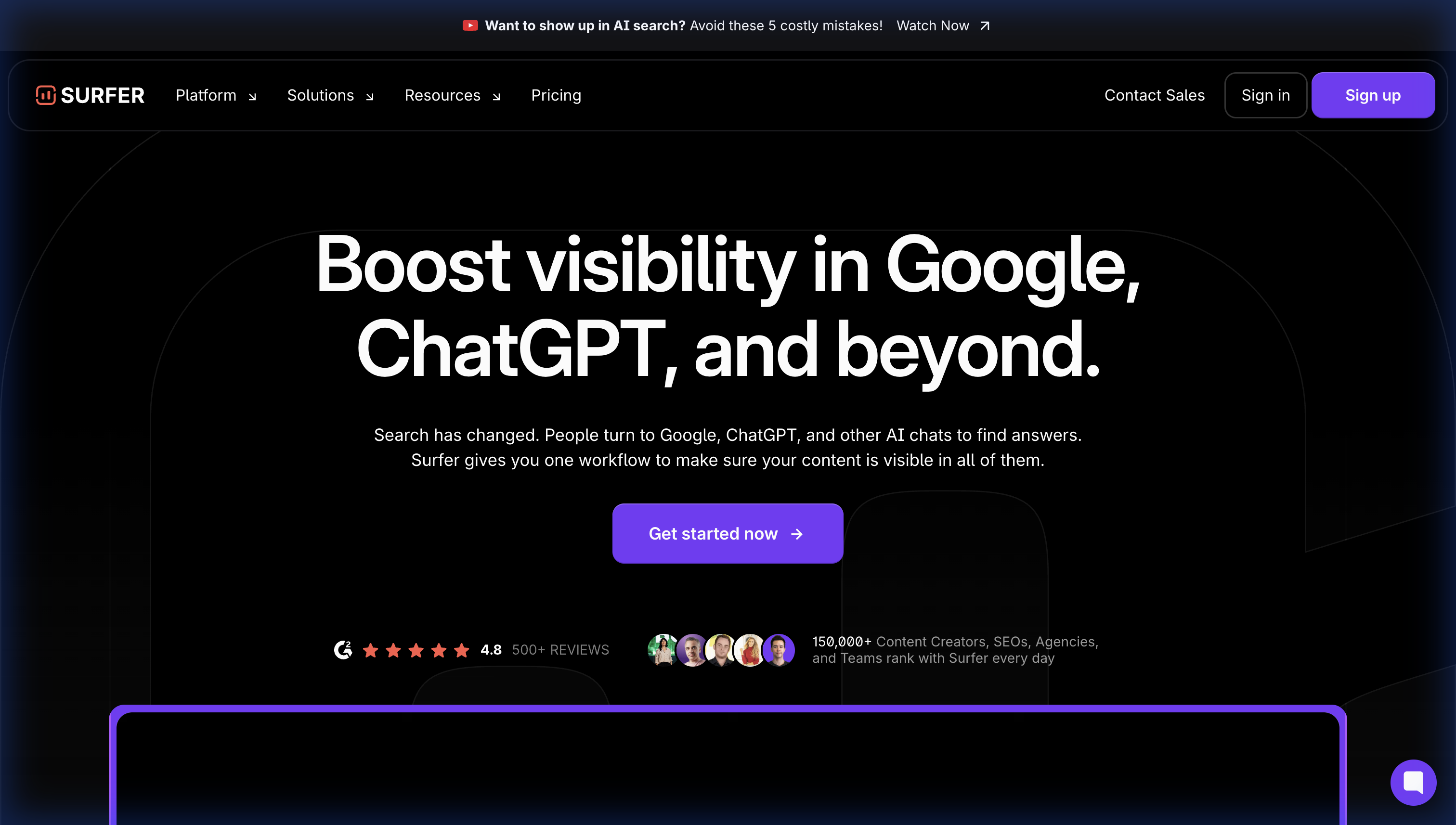Frase combines SERP research (analyzing what's currently ranking), an AI writing assistant, and content optimization scoring. They've also moved into GEO (Generative Engine Optimization) territory, with features designed to help content get cited by AI platforms specifically.